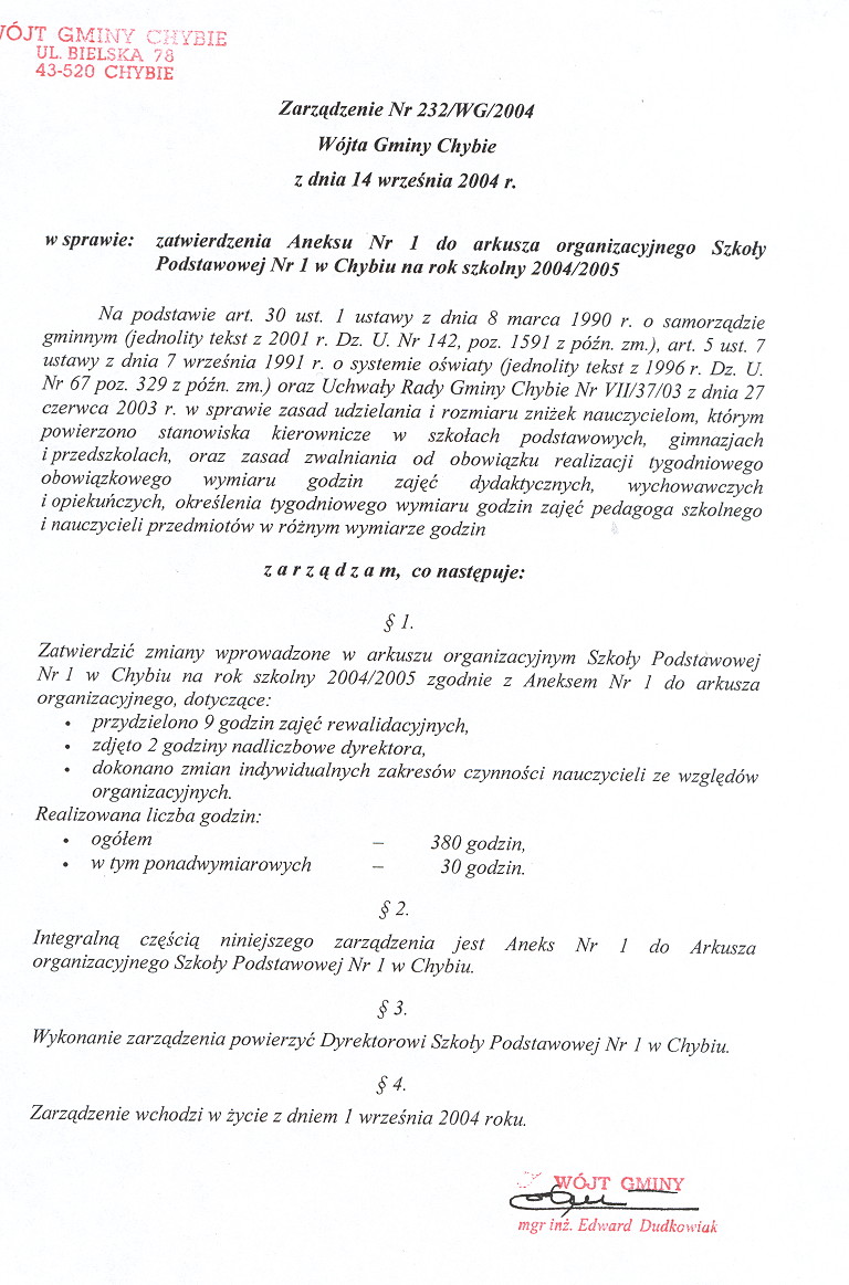 | Typ | Rozmiar | Pobierz | Komentarz | Data dodania | Licznik | graf. | 217.2 KB | POBIERZ | Zarządzenie Nr 232/WG/04 Wójta Gminy Chybie z dnia 14 września 2004 r. w sprawie zatwierdzenia Aneksu Nr 1 do arkusza organizacyjnego Szkoły Podstawowej Nr 1 w Chybiu na rok szkolny 2004/2005 | 2005-01-17 09:49:02 | 213 |