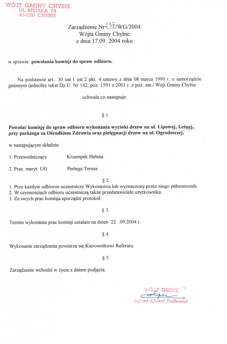 | Typ | Rozmiar | Pobierz | Komentarz | Data dodania | Licznik | graf. | 128 KB | POBIERZ | Zarządzenie Nr 237/WG/04 Wójta Gminy Chybie z dnia 17 września 2004 r. w sprawie powołania komisji do spraw odbioru | 2005-01-17 09:18:23 | 229 |