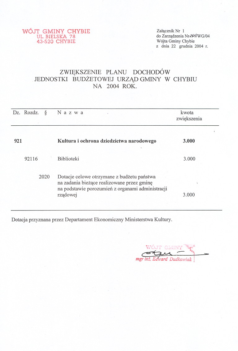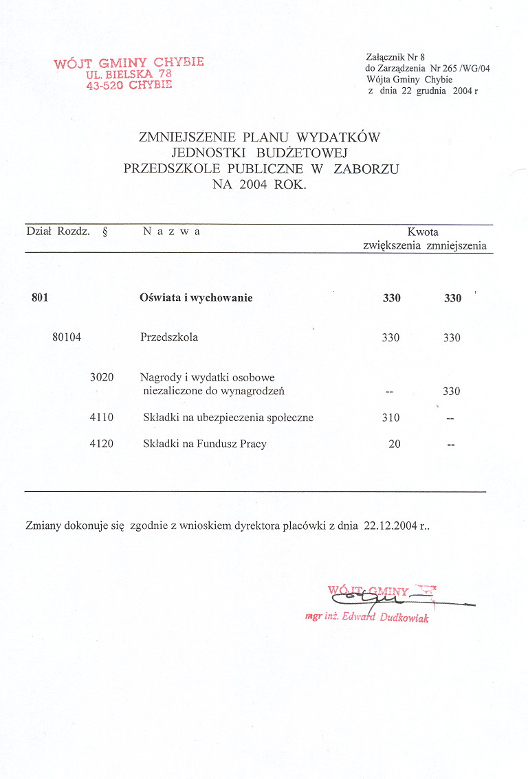 graf. | 171.9 KB | POBIERZ | Zarządzenie Nr 265/WG/04 Wójta Gminy Chybie z dnia 22 grudnia 2004 r. | 2005-01-12 11:27:59 | 220 |