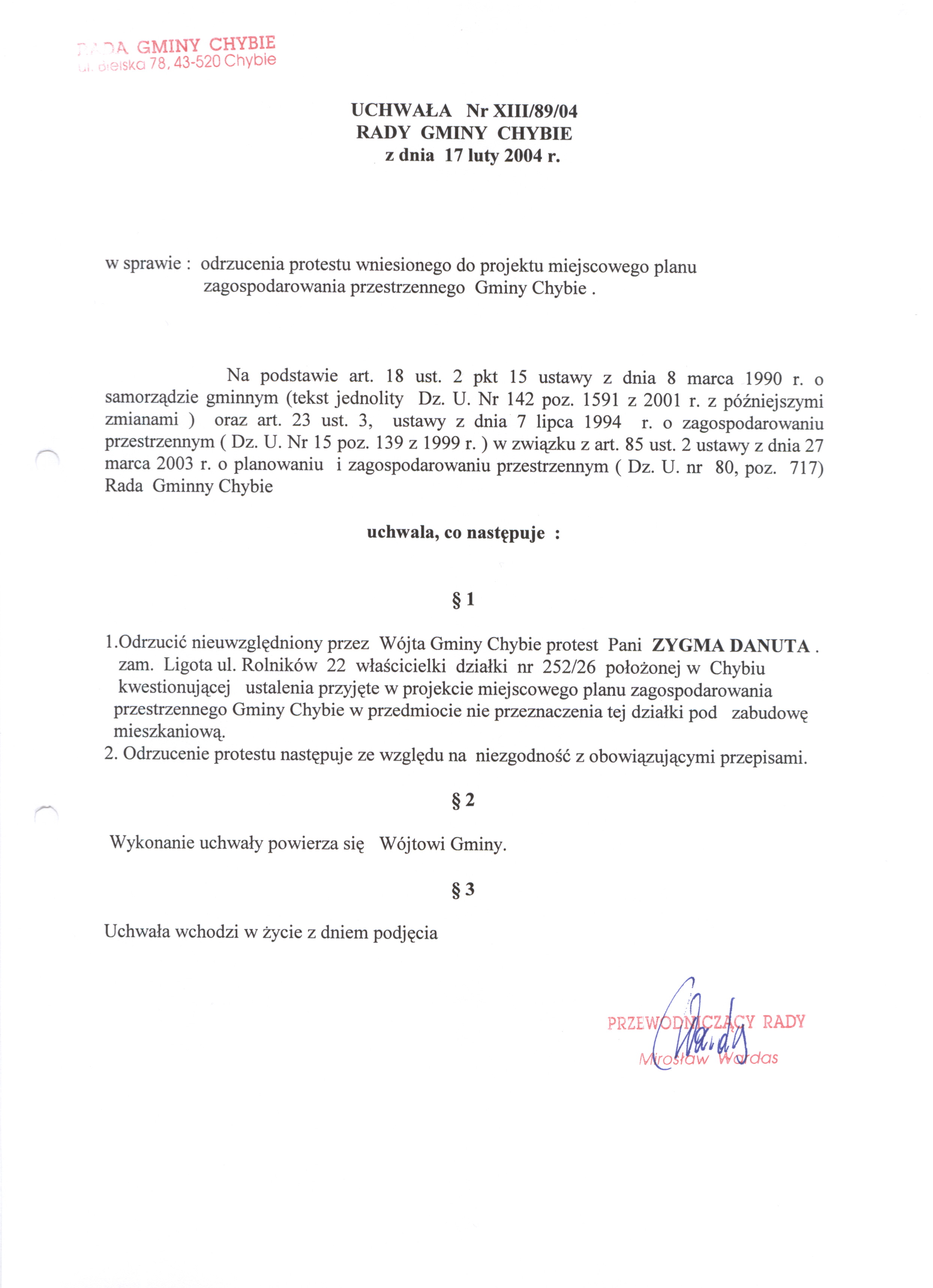| Typ | Rozmiar | Pobierz | Komentarz | Data dodania | Licznik | graf. | 599.9 KB | POBIERZ | Uchwała Nr XIII/89/04 Rady Gminy Chybie z dnia 17 lutego 2004 r. w sprawie odrzucenia protestu wniesionego do projektu miejscowego planu zagospodarowania przestrzennego Gminy Chybie | 2004-06-28 10:44:05 | 298 |